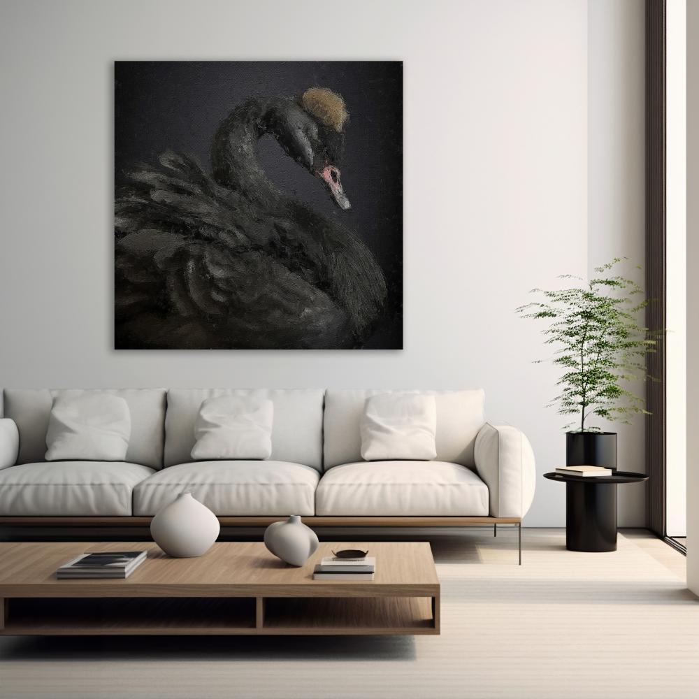 لوحة فنية تجسد الإوزة السوداء بتفاصيل غنية تنقلك إلى عالم من الرقي والفخامة. تجمع هذه اللوحة بين درجات الأسود العميقة واللمسات الهادئة لتكوين مشهد بصري يبعث على التأمل والهدوء مرسومة بدقة لتمنحك إحساسًا حقيقياً وتفرداً يليق بمساحتك الخاصة.