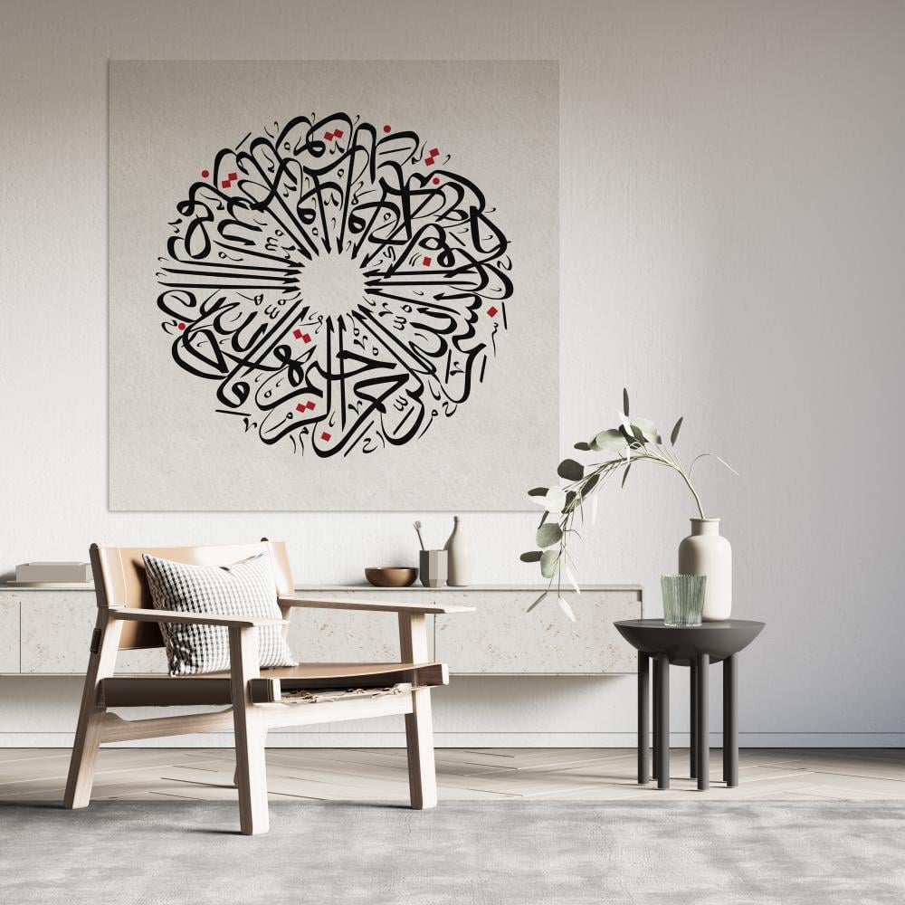 لوحة سورة الإخلاص مو بس فن.. هي ذكر الله يتوسط جدارك